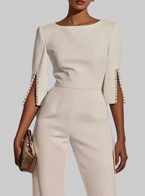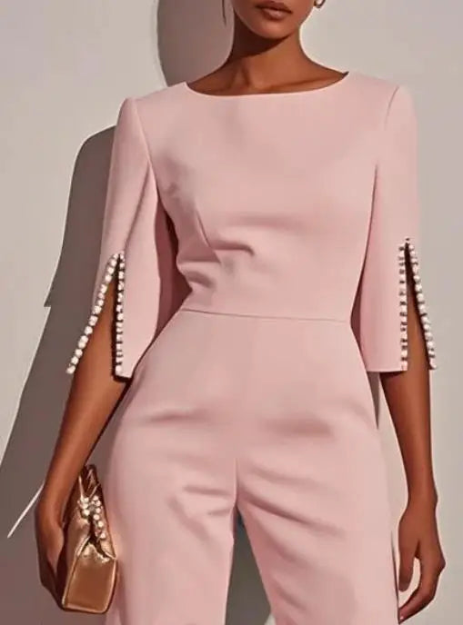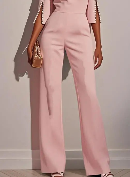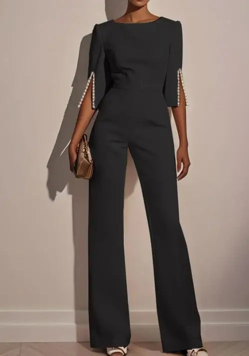 Macacão Elegante comprido para mulher, modelo 2025, sucesso de vendas na primavera e no verão, cor sólida, cintura subida, detalhes em missangas, corte slim.