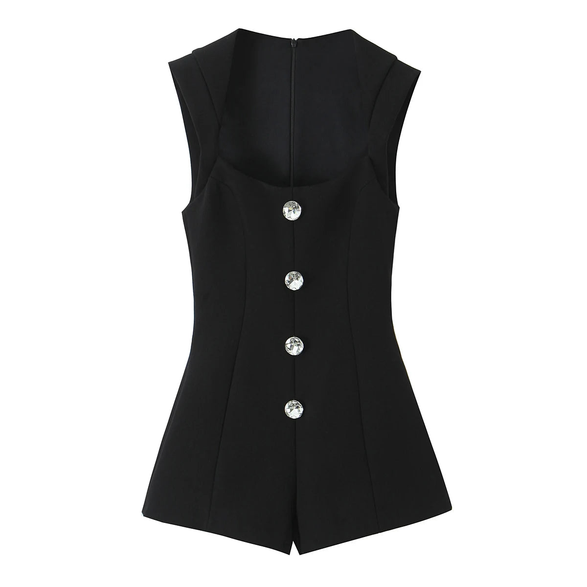 Body feminino preto sexy e elegante com botões de diamante, macacão feminino com gola quadrada para festas e saídas à noite, body da moda 2025.