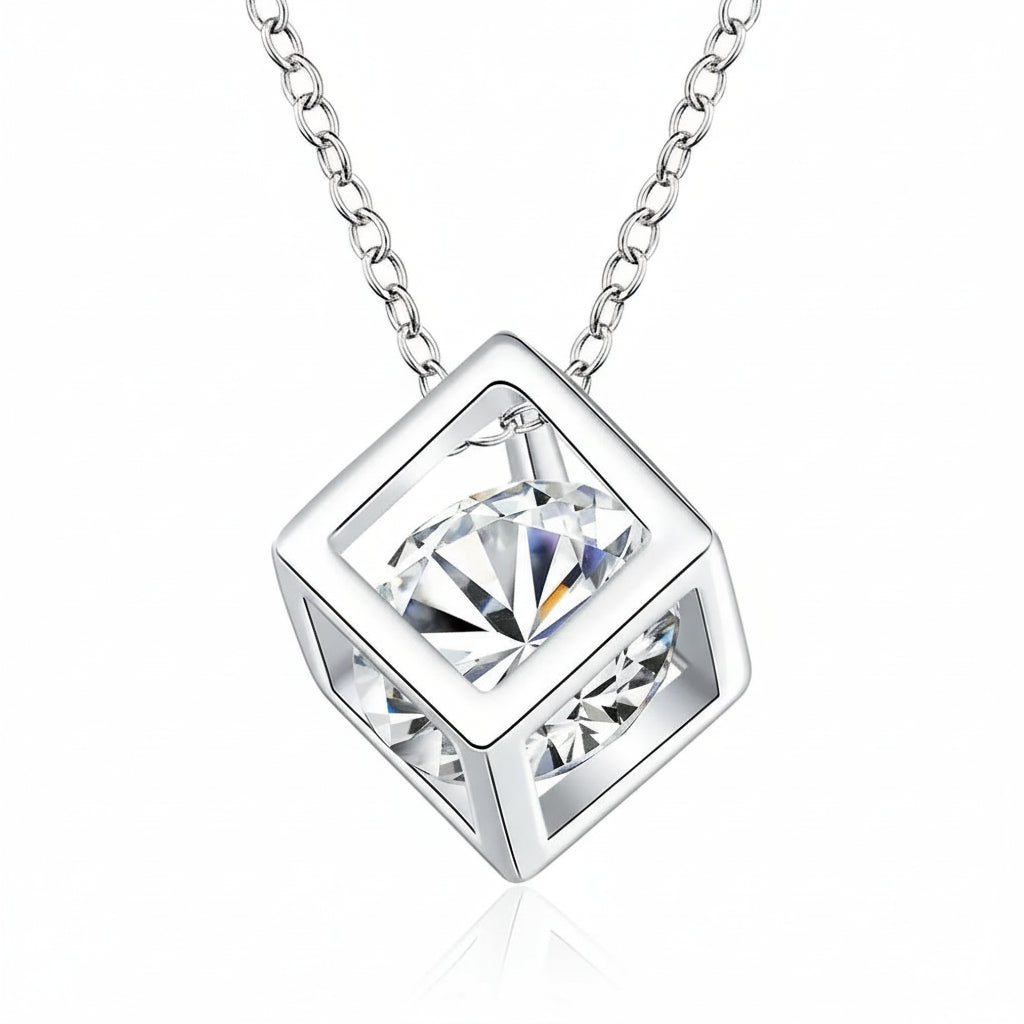 Colar Prateado com Pendente, Corrente e Cristal - Bijuteria Clássica Feminina - Design Original